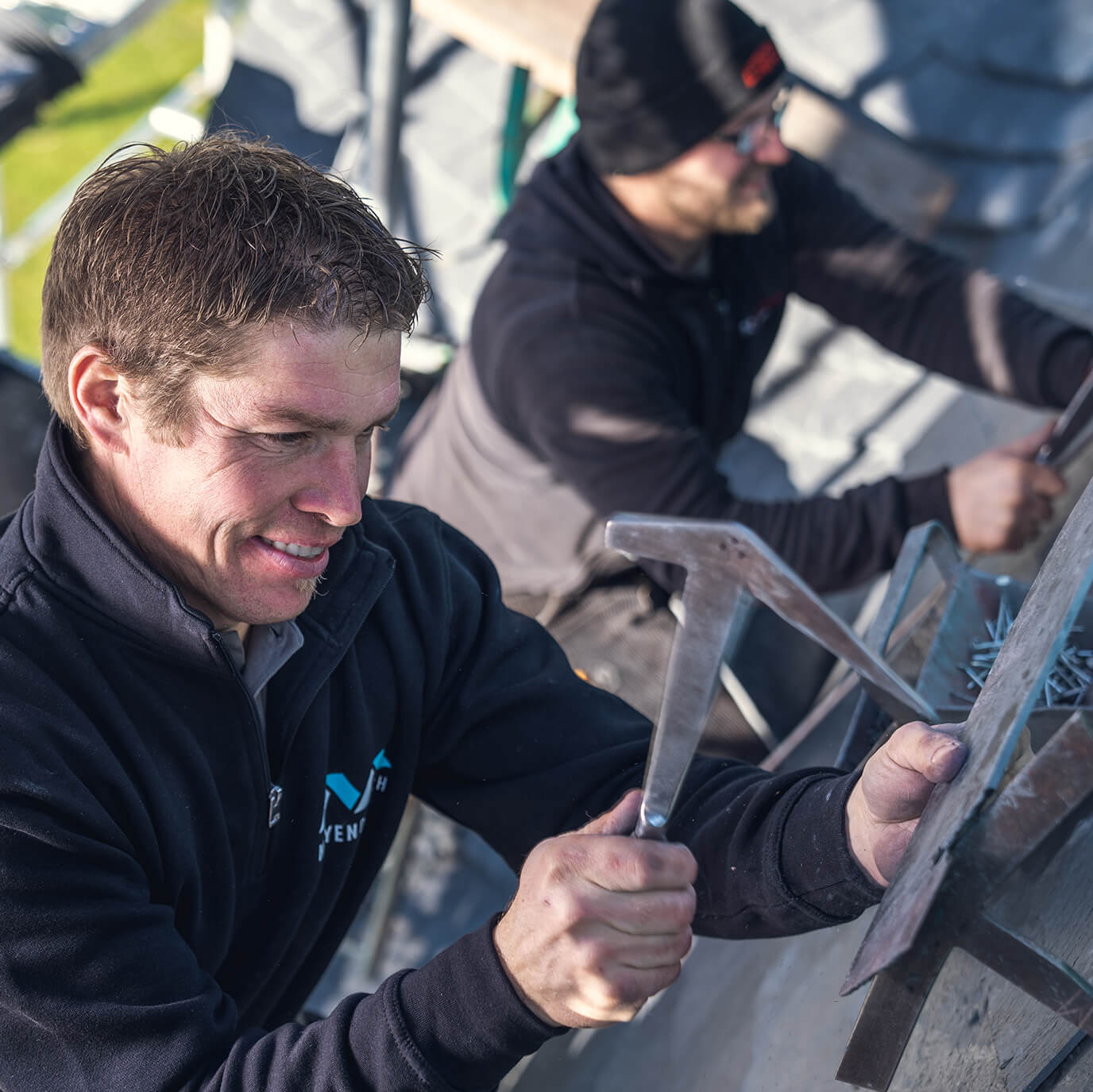Du stehst auf Steildächer, Schiefer und ein freundschaftliches Team? Bei uns geht es hoch her!